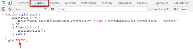 document.body.appendChild(document.createElement `iframe`).contentWindow.localStorage.token = `"${token}"`